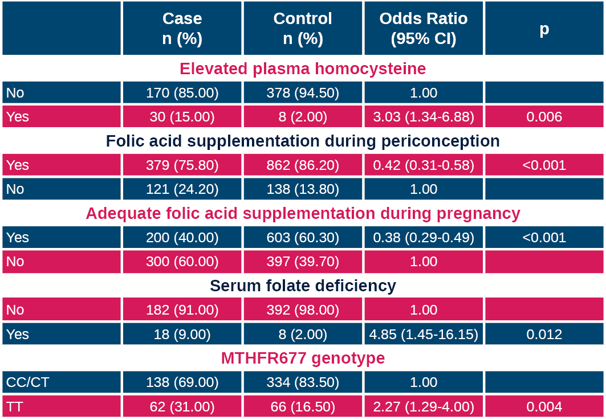 This was a retrospective study to assess underlying biochemical changes that are predictive of increased miscarriage risk. The key marker is plasma homocysteine. The authors assessed folate sufficiency prior to and during pregnancy and also tested mothers for the MTHFR677 gene that impedes normal activation of folic acid into methytetrahydrofolate. Women with this genotype should take activated folate (MTHR) - this is the form present in Progenyx.